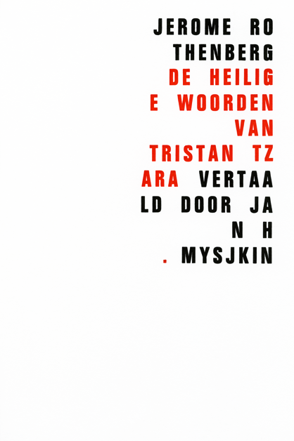 Het 244-regelige gedicht De heilige woorden van Tristan Tzara van Jerome Rothenberg verschijnt nu voor het eerst in vertaling naar aanleiding van de tentoonstelling die De Slegte te Antwerpen op Gedichtendag organiseerde rond Mysjkins bibliofiel of bijzonder uitgegeven vertalingen van dichters uit de historische avant-garde. Uitgeverij Vleugels gaf de bundel, die met de hand werd gezet en gedrukt, uit in een oplage van negenentachtig exemplaren.