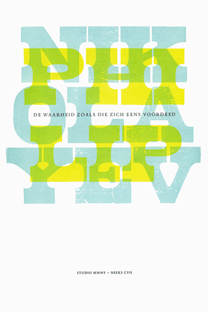 Van De waarheid zoals die zich eens voordeed, twee gedichten uitgegeven ter gelegenheid van de 45e Poetry International Rotterdam in 2014, zijn nog enkele exemplaren te koop na aanvraag per email. (vertaling Jabik Veenbaas | 8 pagina’s | 36 exemplaren | €23,50)