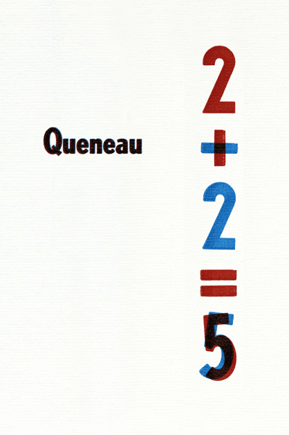 Enkele korte opmerkingen met betrekking tot de aërodynamische eigenschappen van de optelsom [‘Quelques remarques sommaires relatives aux propriétés aérodynamiques de l’addition’] uit Contes et propos, natuurlijk voor een symbolische prijs van 2+2=5 euro.